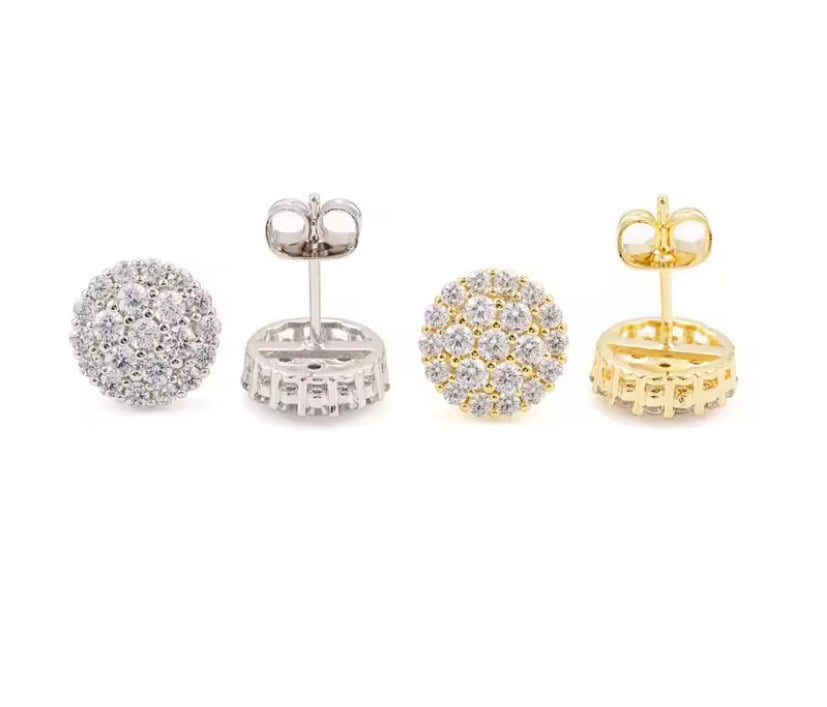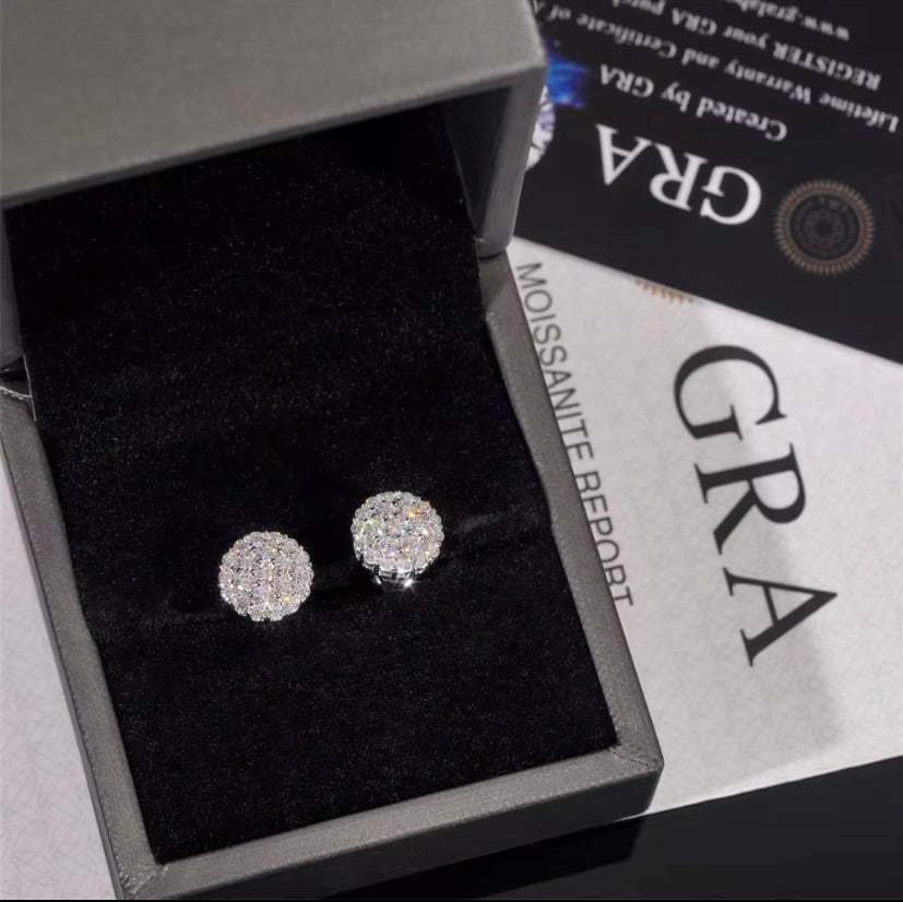 10mm Hip Hop Round 925 VVS1 Moissanite Earrings