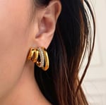 18K Gold Plated Stainless Steele Four Layer Clay Iced Out Zircon Earrings