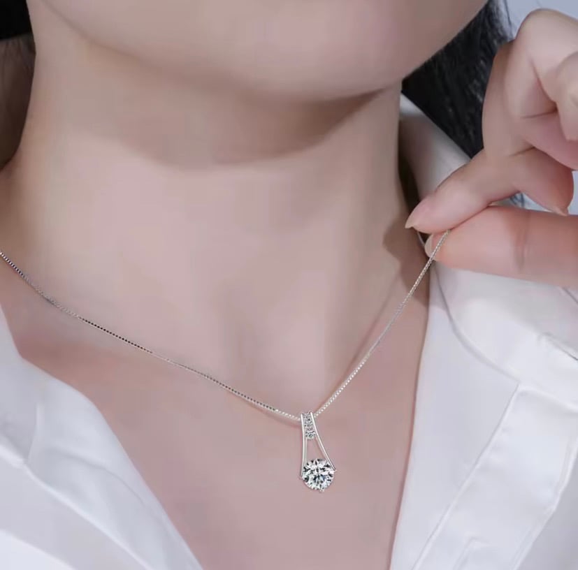 Express your love with this exquisite round ball brilliant cut-shaped moissanite necklace. The ball shape represents single-mindedness, the moissanite represents eternal love. Made of moissanite, this necklace never loses its brilliance, fire or it’s shine. Made from 925 Sterling Silver and plated with Silver Plated and Premium rhodium for a lasting shine, ensuring a durable, tarnish-free finish and durability. Hyperallergenic and perfect for daily wear. This necklace makes a heartfelt gift for someone special or a luxurious treat for yourself. Experience the elegance and confidence of wearing jewelry that complements any occasion!