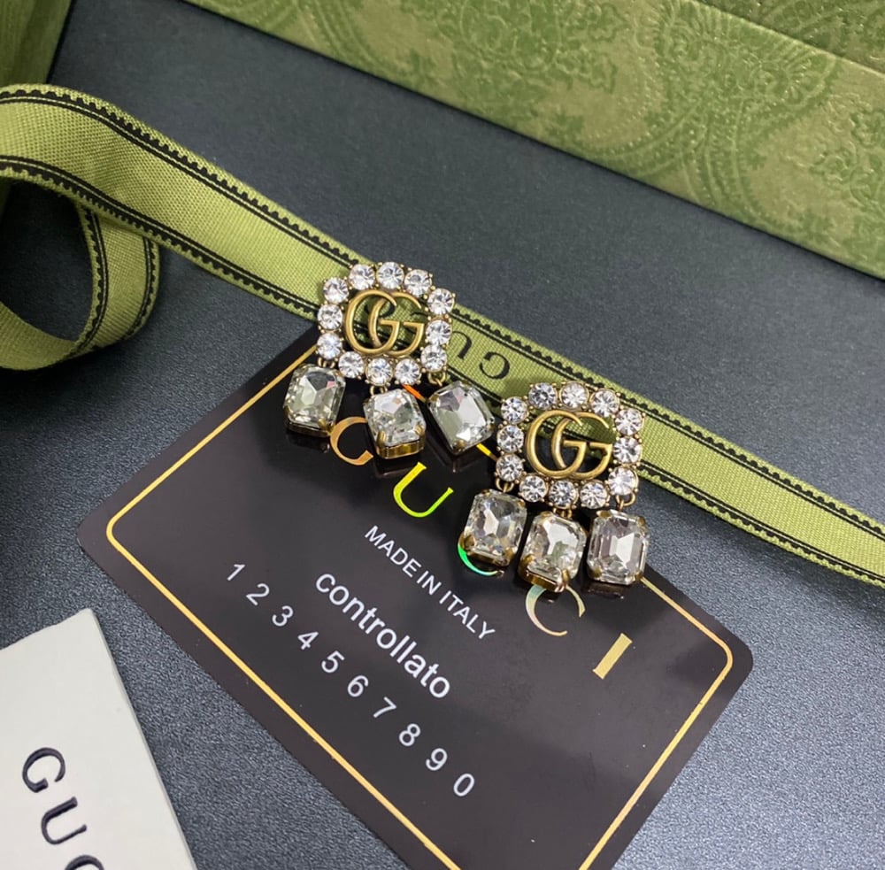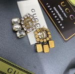 These Gucci double G earrings feature dangling crystals, giving them an elegant and luxurious look. The iconic Gucci brand, combined with the sparkling crystal accents, makes these earrings a stylish and versatile accessory for any outfit. The dangle/drop style adds movement and sophistication, making them a must-have piece. Whether you're dressing up for a night out or adding some flair to your everyday look, these Earrings are sure to make a statement.
