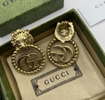 These Gucci GG Vintage Lion Round Earrings are stylish & luxurious dangle/drop earrings by the renowned brand Gucci. Made with high-quality materials & featuring a classic GG design with a vintage twist, these earrings exude luxury & sophistication. They are perfect for adding a touch of glamour to any outfit. The classic design & timeless appeal of the Gucci brand make these earrings a must-have accessory for any fashion-forward individual looking to elevate their look.