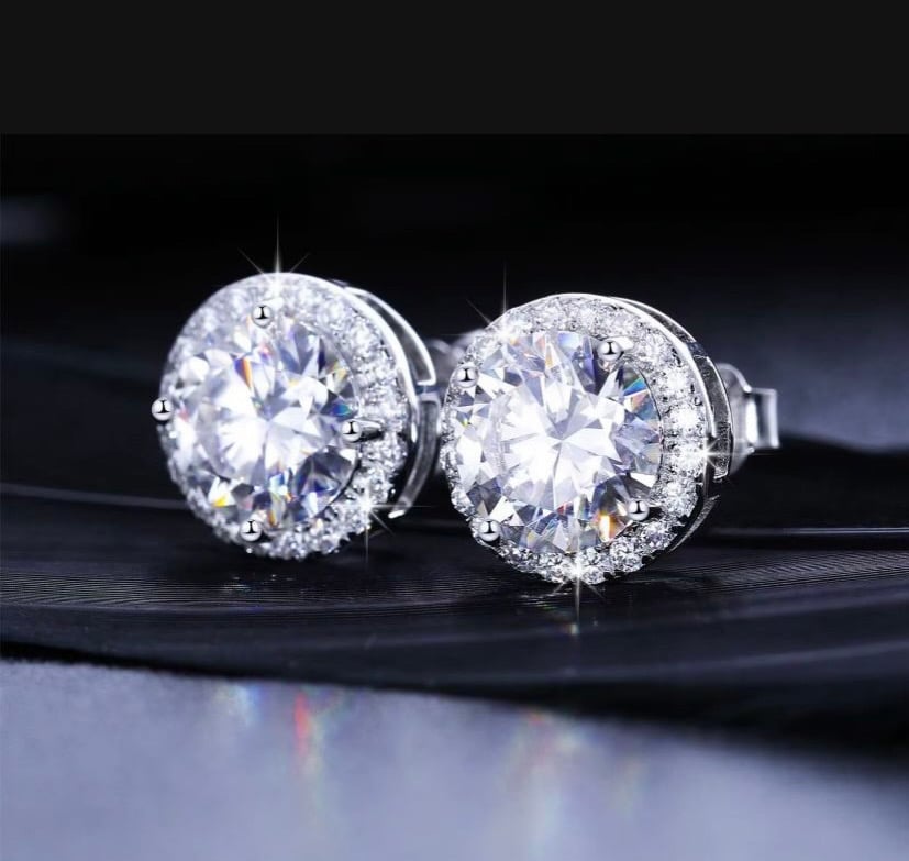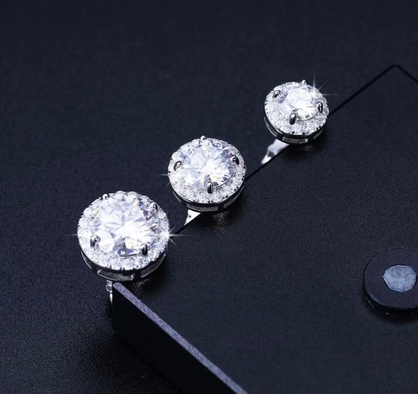 ●Moissanite Stud Earrings With Brilliant Sparkle: Moissanite stones set in the earrings are all lab created D color/VVS1 clarity/excellent cut round moissanite with the same optical and physical properties as a South African diamond that will never lose its brilliance or fire. Certified and issued by the GRA authority, which can pass the diamond tester 100%. Moissanite Stone offers you the best quality assurance of gemstones.